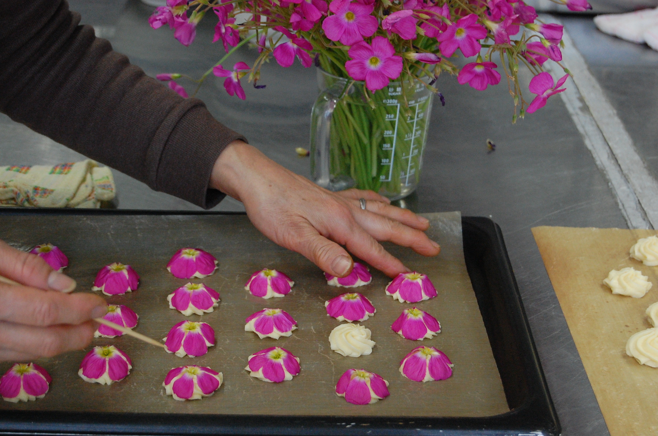 トッピングしたりミックスしたり。季節のお花や海草、果実をあしらって作る焼き菓子、